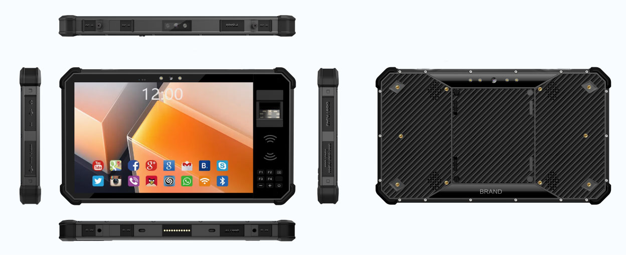 Rugged RFID Fingerprint Tablet SF919 is super industrial IP68 standard, Android 15 OS upgradable , Octa-core processor 2.2/2.4Ghz, Memory 4+64GB or 8+256GB, 10.1 Inch HD large screen, Capacitive panel, 8inches or 10.1inches 1280*720pixel or FHD 1920*1200 IPSI. Military standard with powerful battery 10000mAh, 13MP camera, Built in FBI certified capactive or Optical fingerprint sensor, facial and Iris recognition as optional. Powerful 5G network support. Which widely used for Telco Sim Card Registration, EKYC Census, Industrial RFID filed, Police Officer and Mobile Time Attendance Etc.